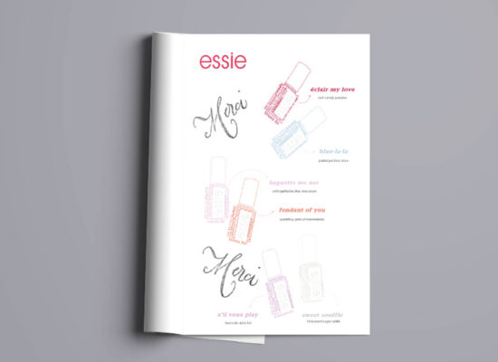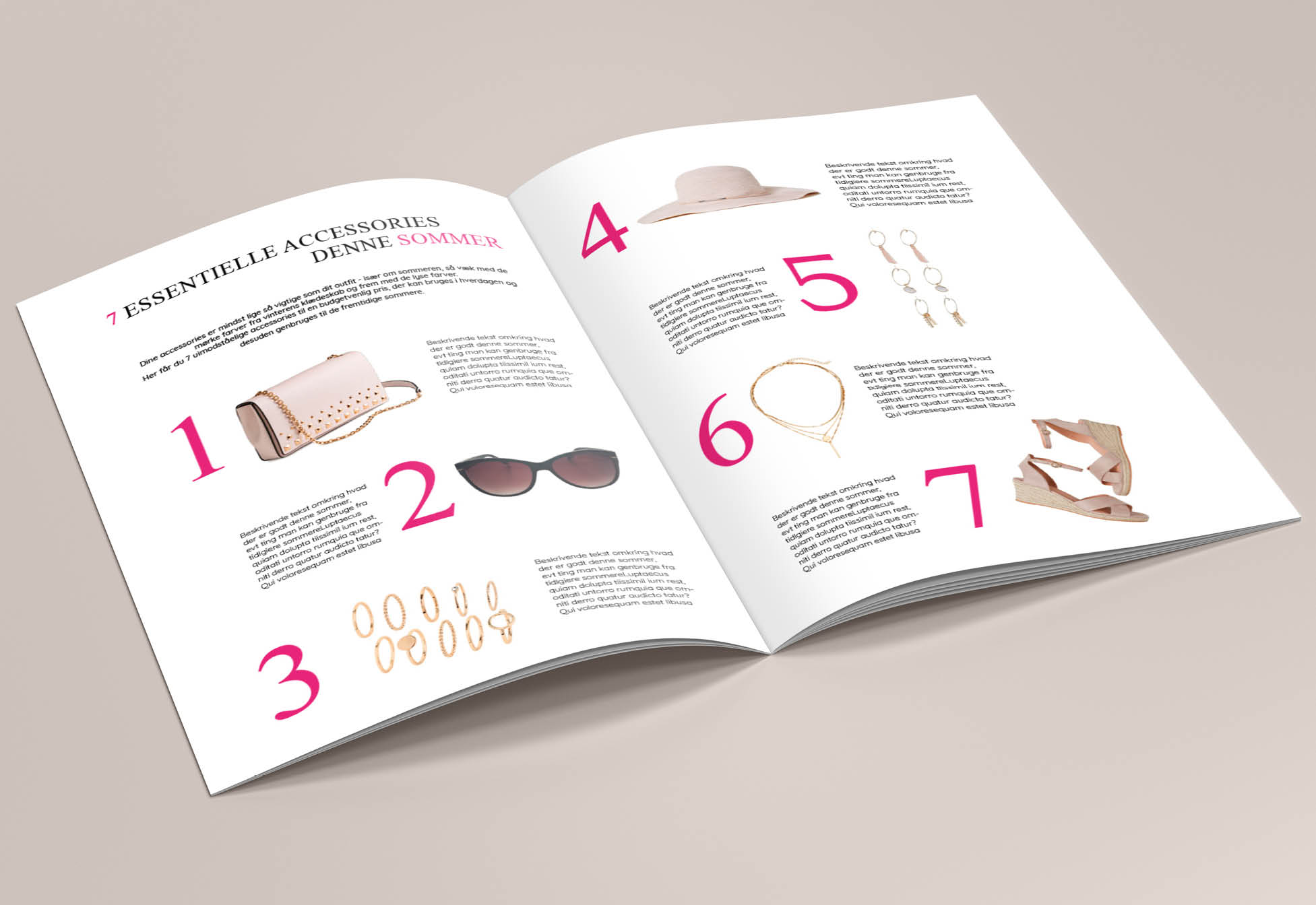 Opsætning til et magasinblad: reklame, fotoreportage og artikel